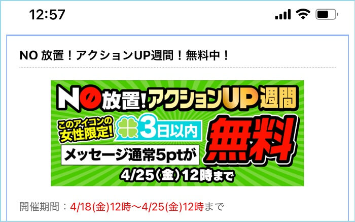登録後もメルマガなどから定期的にポイントやマイルを受け取れます。使ってみて「いまいちだ」「自分には合わない」と思ったらポイントを購入する必要がないぶん、料金に関するリスクはありません。会えないのに毎月定額でお金を払う無駄もないから気楽です。
